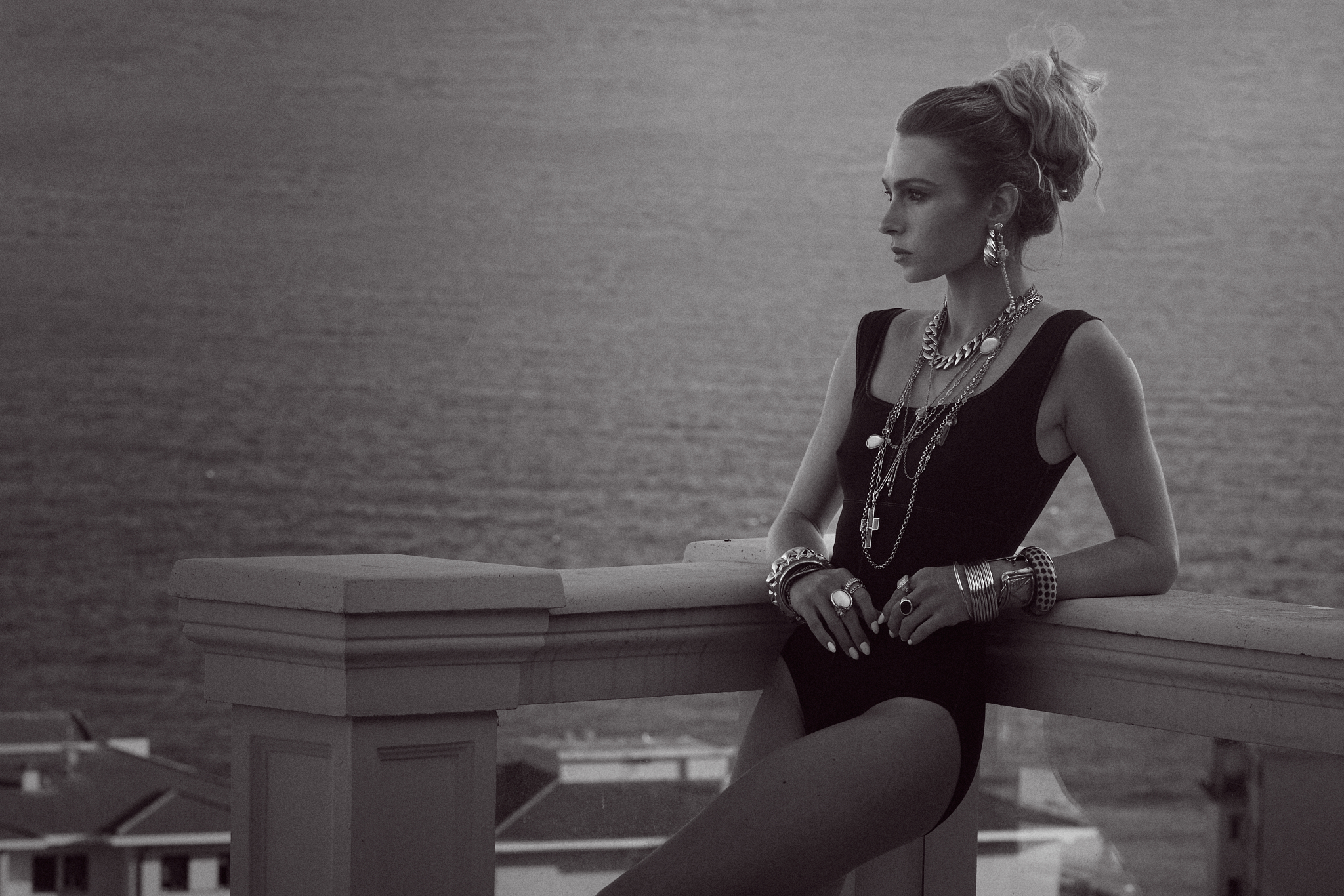 Décryptage de l’Image – Dolce Vita L’image Dolce Vita capture un moment suspendu dans le temps, rappelant les films italiens des années 60, où la beauté, l’élégance et la contemplation s’entremêlent. Le choix du noir et blanc renforce